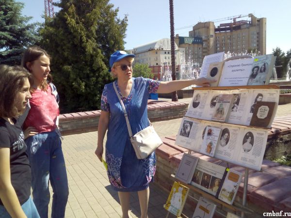 6 июня сотрудники отдела обслуживания читателей Центральной библиотеки провели на площади Молодёжная литературную акцию «Строкою Пушкина воспеты», посвящённую 220-летию со дня рождения А.С. Пушкина. Жителям и гостям города предлагались материалы, посвящённые женщинам, так или иначе повлиявшим на творчество великого поэта, женщинам, которые были его Музами и вдохновеньем. Библиотекари рассказали про Е.И. Голицыну и А.П. Керн, про З.А. Волконскую и М.Н. Раевскую и других. Многих заинтересовал сборник «Утаённая любовь Пушкина», посвящённый одной из загадок биографии Пушкина - пережитой им в молодые годы страстной и неразделённой любви к неизвестной женщине, имя которой он скрыл под литером N.N. А также статья в «Российской газете» литератора В. Непомнящего «С одной не известной», о том, что хрестоматийное «Я помню чудное мгновенье» посвящено совсем не Анне Керн, а императрице Елизавете Алексеевне, которая была «безыменной любовью Пушкина». Всем участникам литературной акции были вручены рекламные листовки, разработанные сотрудниками информационно-библиографического отдела библиотеки.