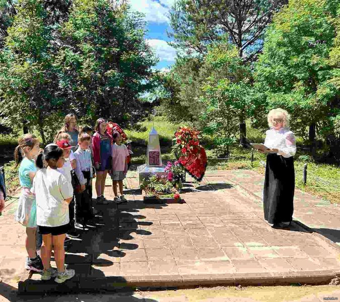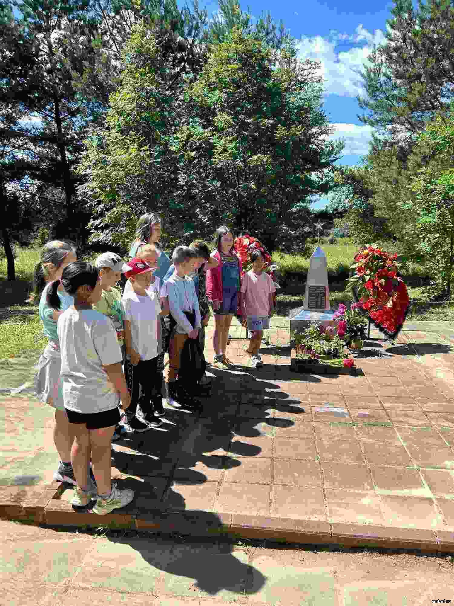 Сотрудники библиотеки и Дома культуры п. Новая Ольховка для ребят школьного лагеря Ново-Ольховской средней школы провели торжественное мероприятие «Свеча памяти» у Братской могилы советских воинов.