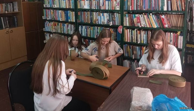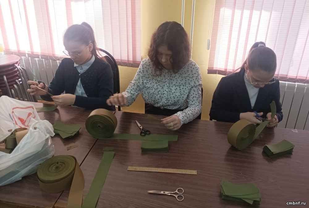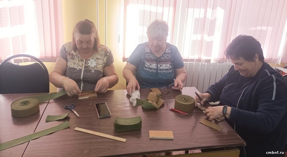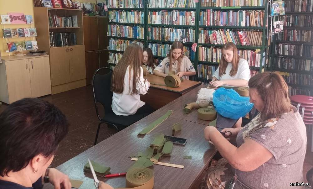 Вместе нарезали ленточки для плетения москитных сетей для участников СВО.
