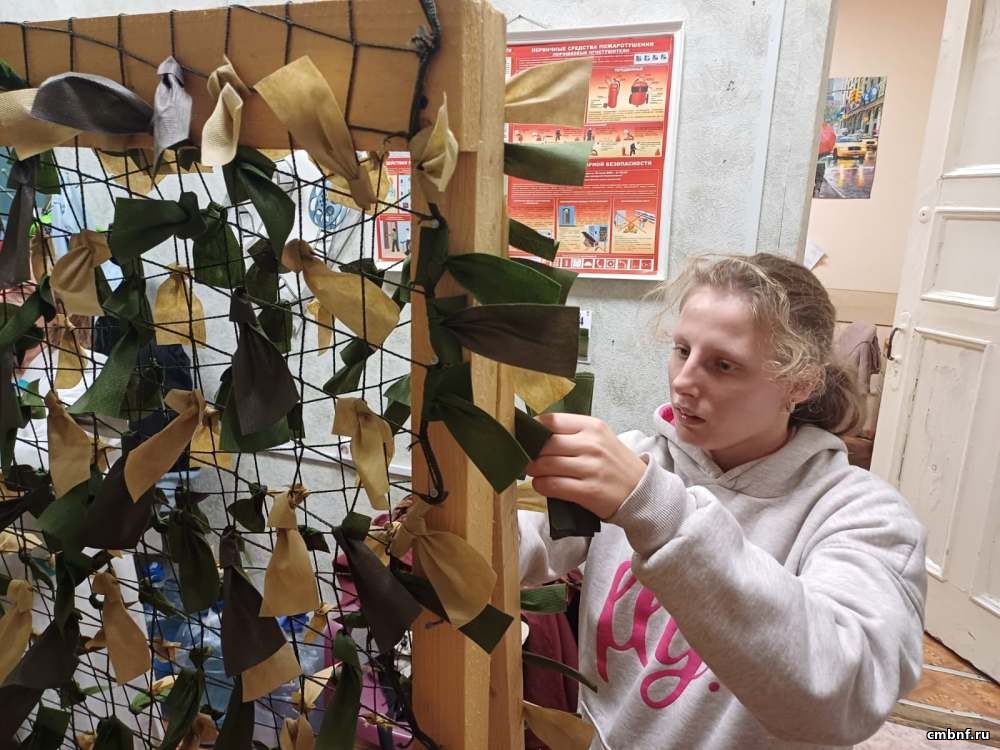 Читатели Центральной библиотеки принимают активное участие в помощи СВО. На нашей базе организовано плетение маскировочных сетей.