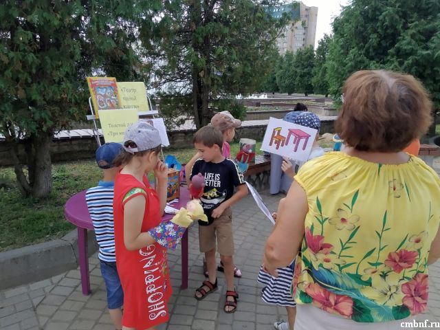 Сотрудники отдела обслуживания читателей Центральной библиотеки (ул. Маршала Жукова,10) в рамках проекта «Читающий город» организовали на площади Молодёжная библиотечную арт-скамейку «Театр одной книги» .16 июля все желающие стали участниками экспромт-театра по сказке Льва Толстого «Три медведя». Каждый сумел реализовать свои актёрские способности, выбрав роль одного из героев сказки. Библиотечная арт-скамейка стала увлекательным стимулом для творческого самовыражения детей.