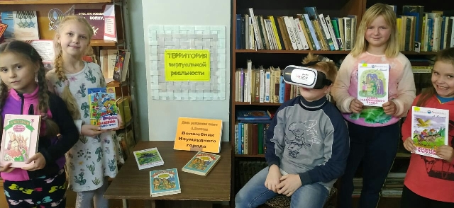В библиотеке с. Атепцево в рамках проекта «БиблиоИнновации» организована «Территория виртуальной реальности». Виртуальная реальность все быстрее входит в жизнь современного человека, и мы стараемся идти в ногу со временем. Идея такая – после изучения любой темы по книгам и слайдам (страны, города, достопримечательности, географические путешествия и многое другое), презентации книжной выставки – отправиться в виртуальную экскурсию с помощью очков виртуальной реальности, чтобы воочию увидеть то, о чем только что услышали. Читатели уже с удовольствием познакомились с такими темами, как «Слоны», юбилей книги А. Волкова «Волшебник изумрудного города». К 85-летию Кира Булычёва из книжного фонда выбраны книги автора и подобраны мультфильмы по произведениям знаменитого детского писателя, которые можно было смотреть на большом экране и в режиме виртуальной реальности через очки VR.