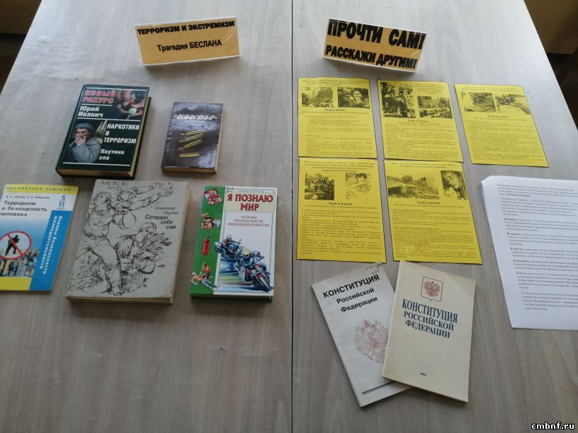 28 сентября с сельском отделе обслуживания читателей в д. Волченки был проведе6н обзор литературы, представленной на тематической книжной выставке «Терроризм и экстремизм. Трагедия Беслана».