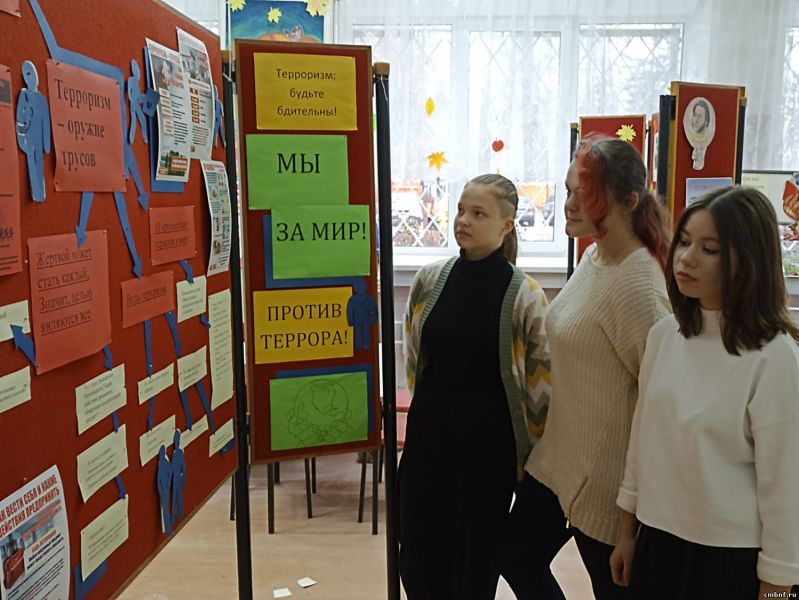 Библиотекари отдела обслуживания читателей (ул. Латышская, 15б) провели беседу с молодежью у информационного стенда «Терроризм на весах истории».
