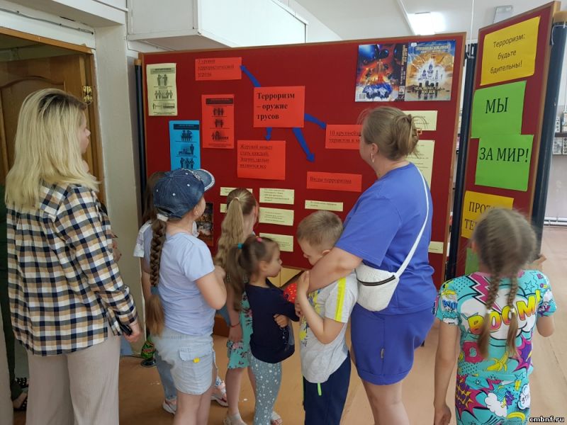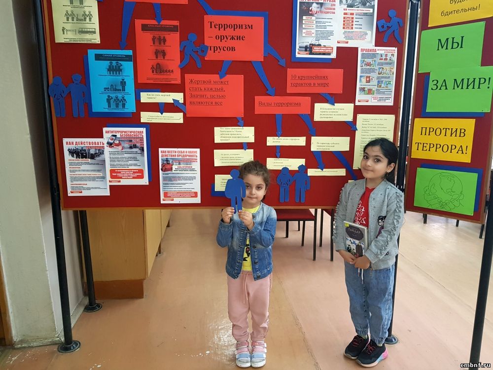 В библиотеке главная работа по антитеррористической защищённости – наглядная информация. Буклеты, памятки, брошюры. Они содержат напоминания о главных правилах поведения в случае террористической атаки. Сотрудники отдела обслуживания читателей (ул. Латышская, 15б) подготовили для посетителей стенд с инфографикой «Терроризм – оружие трусов». Стенд информирует детей и взрослых о видах терроризма, о трёх уровнях террористической угрозы, куда и как сообщать о противоправном контенте и других предупредительно-защитных мерах.
