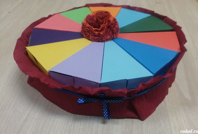 Такой торт будет интересной находкой на день рождения, День матери. В каждый «кусочек торта» можно положить пожелание или маленький подарочек.
