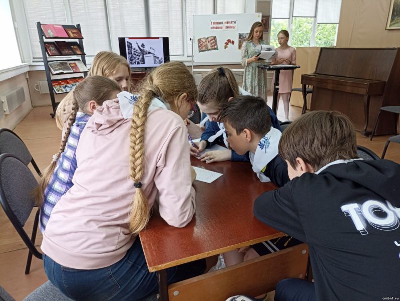 Прошел 81 год с тех пор, когда началась Великая Отечественная война. Мы не имеем права забыть ужасы той войны. Немало было подвигов совершено нашими солдатами ради долгожданной победы. Многие из них не вернулись домой, и каждого можно считать героем. Библиотекари отдела обслуживания (ул. Латышская 15Б) пригласили юных читателей на исторический брейн-ринг «Тот самый длинный день в году», посвященный Дню памяти и скорби. Ребятам предстояло найти ответы на вопросы о событиях июня 1941 года. На протяжении 9 раундов участники дешифровали приказы и радиограммы, вспоминали названия городов, принявших первый удар, фамилии героев. Заведующая отделом Антонова Г.А. дополняла каждый ответ интересными фактами о начале Великой Отечественной войны, о героизме советских солдат, о защитниках Брестской крепости и о подвигах, совершенных советскими солдатами в первые дни войны.
