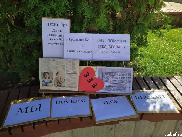 3 сентября в Центральной библиотеке прошла антитеррористическая акция, посвящённая Дню памяти жертв терроризма «Трагедия Беслана в наших сердцах». Этот день приурочен к трагическим событиям, произошедшим 1 сентября 2004 года в городе Беслане во время торжественной линейки. В те страшные дни погибло 333 человека, из них 186 детей.