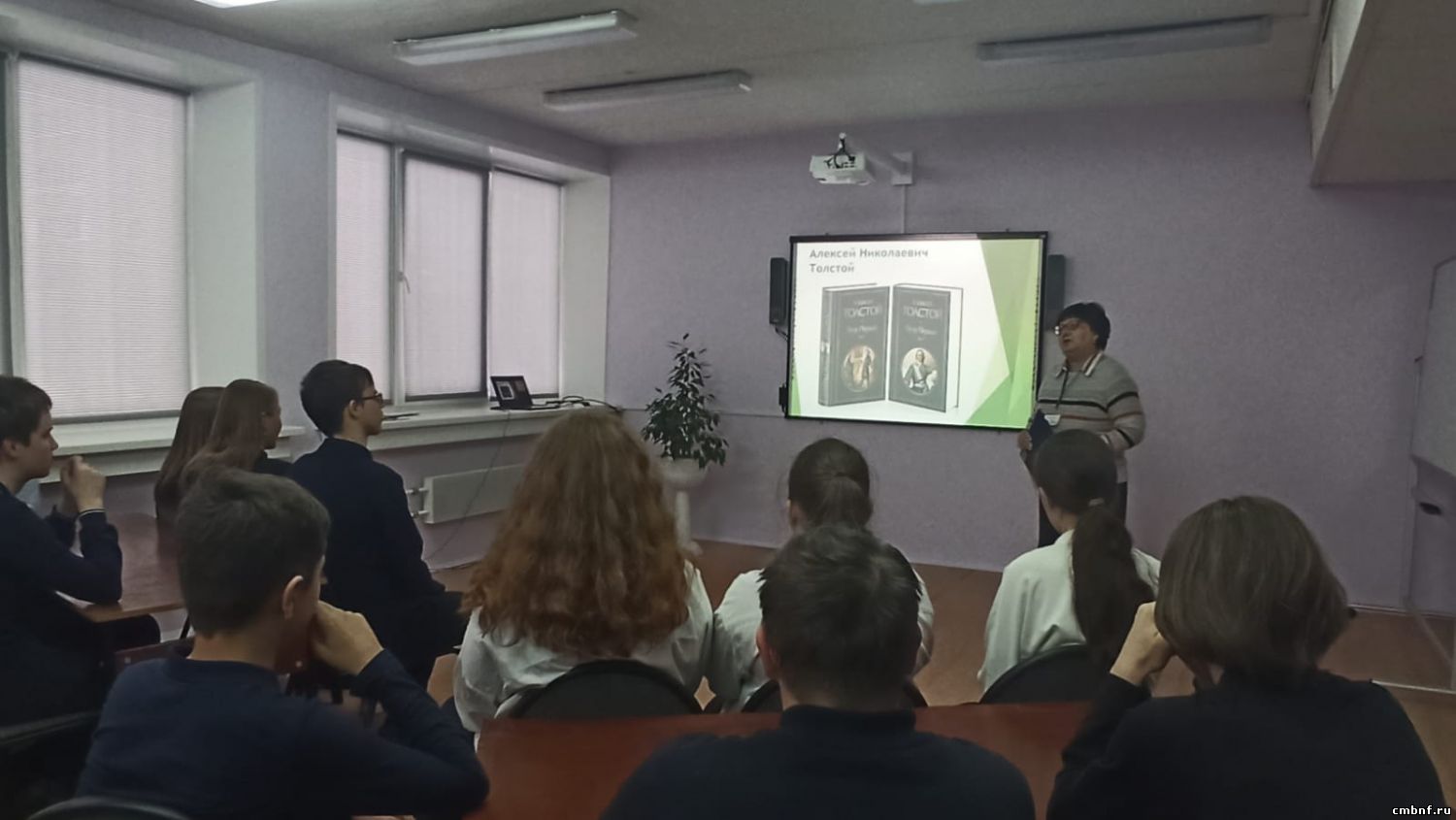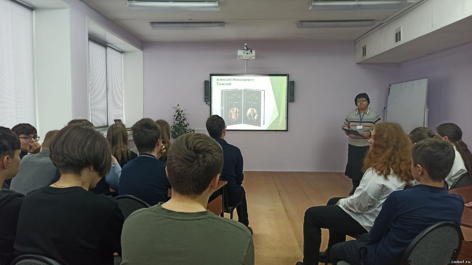 Библиотекари рассказали присутствующим биографию и творческий путь писателя, познакомили с его произведениями. Особый читательский интерес вызвал исторический роман-эпопея «Пётр Первый», освещающий период создания нового государства – Российской империи.