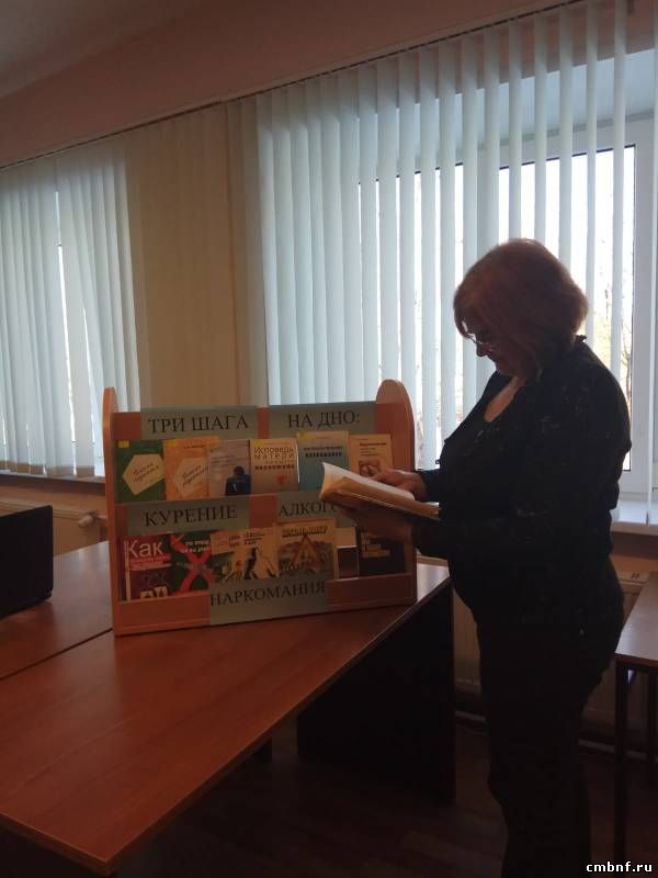 31 марта в библиотеке п. Васильчиново была организована книжная выставка «Три шага на дно: алкоголизм, курение, наркомания», повествующая о пагубном влиянии вредных привычек, которые мешают людям полноценно жить. На выставке были представлены книги, посвященные проблеме наркомании, курения и алкоголизма, как глобальной угрозе здоровью населения страны и национальной безопасности.