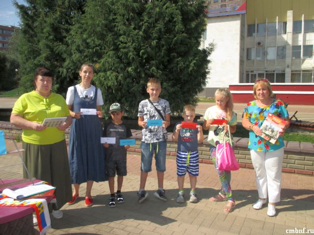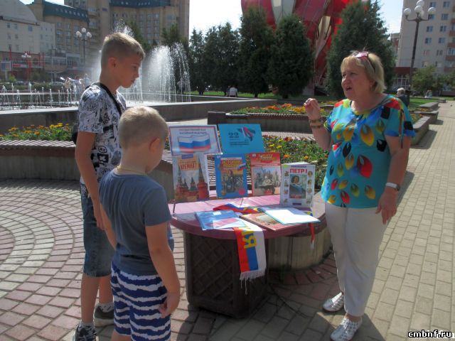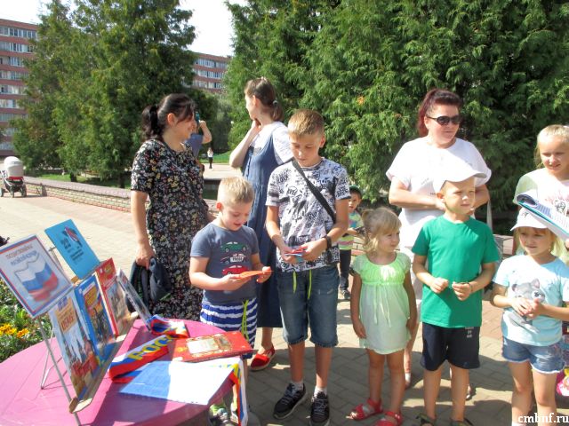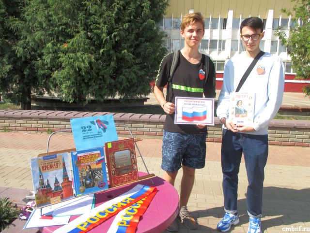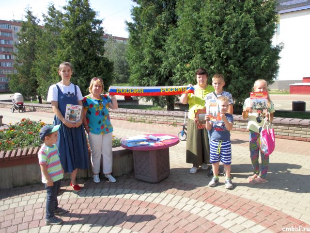 20 августа библиотекари отдела обслуживания читателей (ул. Маршала Жукова,10) Цепкова М.М., Устинова С.Н. и Саломатина М.П. предложили жителям города принять участие в патриотической акции «Три символа родной державы», посвященной Дню Государственного флага РФ.