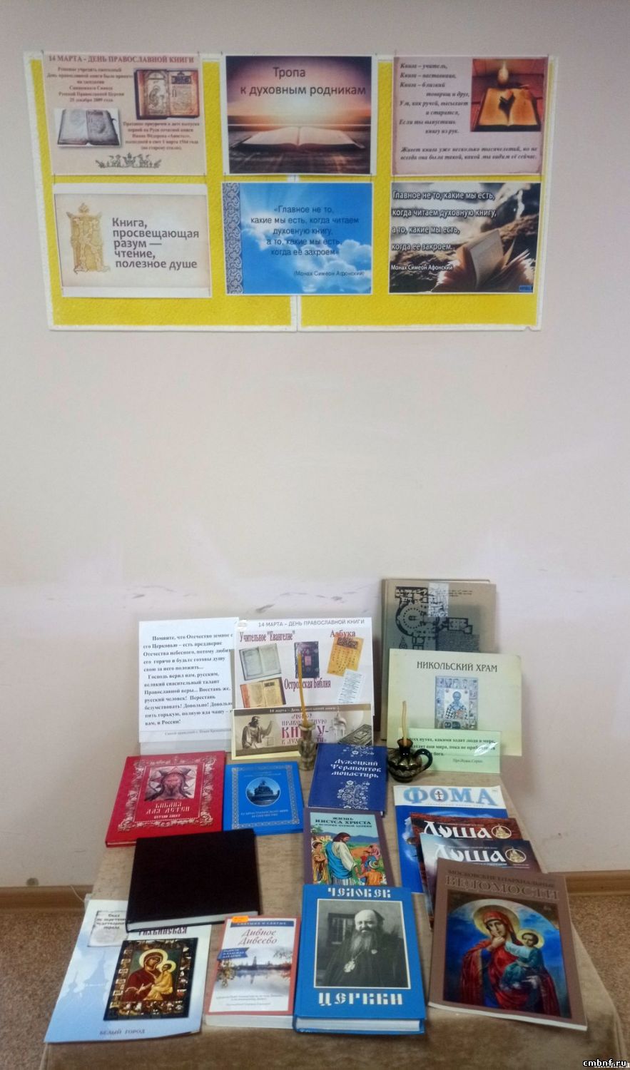 14 марта наша страна отмечает День православной книги. День православной книги – праздник совсем юный, но по значимости он велик. Этот праздник был установлен 25 декабря 2009 года решением Священного Синода русской православной Церкви по инициативе Патриарха Московского и всея Руси Кирилла. Православные книги – это особый вид литературы. И это не только жития святых и священное писание, но и личный духовный опыт священников, руководства по участию в церковных таинствах, пособия по воспитанию детей, художественные произведения. В рамках празднования Дня православной книги в библиотеке д. Шустиково развернута тематическая выставка «Тропа к духовным родникам» о христианских мотивах в литературе и живописи, о святынях православия, православных обрядах. Все желающие с 11 по 23 марта могут прийти и ознакомиться с выставкой.