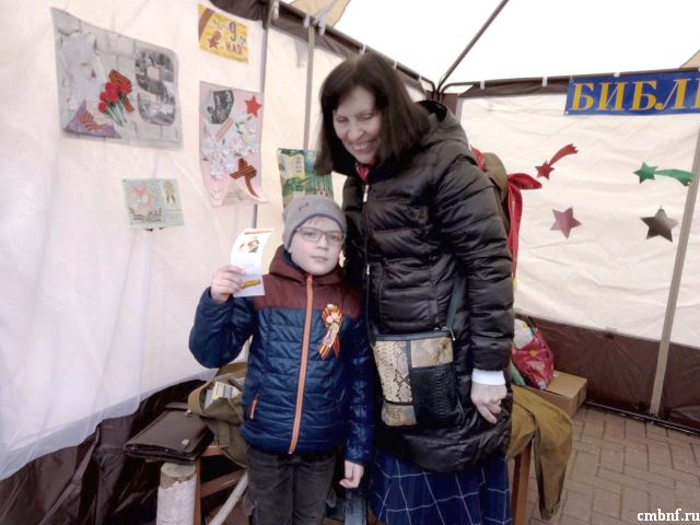 9 Мая в Наро-Фоминском городском округе прошли праздничные мероприятия, посвящённые Дню Победы. Сотрудники информационно-библиографического отдела приняли участие в программе Центральной библиотеки на площади Молодёжной с викториной «Твоя строка в истории России». В течение дня всем гостям библиотечной палатки предлагалось выбрать карточку с вопросом по военной истории наро-фоминской земли. За каждый правильный ответ вручали открытки из серии «Помним и гордимся», выпускаемые библиотекой. За два правильных ответа – буклет «10 фактов о Наро-Фоминске». Все участники получили книжные закладки, подготовленные библиографом отдела специально ко Дню Победы. Ответы на вопросы традиционно уже сопровождались воспоминаниями, обсуждениями, уточнениями и часто перерастали в оживлённый рассказ о событиях и людях, о которых шла речь в вопросе. И, конечно же, за дополнительной информацией и книгами все участники приглашались в библиотеку.