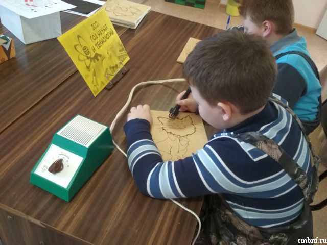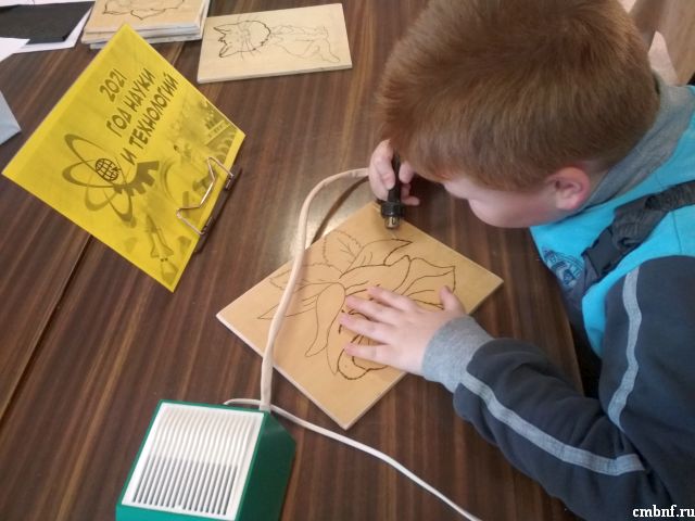 К Году науки и технологий в библиотеке д.Шустиково с клубом по интересам в «В кругу друзей» прошел занимательный мастер-класс «Творите, выдумывайте, пробуйте». В начале мероприятия Крутина Ирина Александровна познакомила ребят с одним из видов выжигания – пирография.
