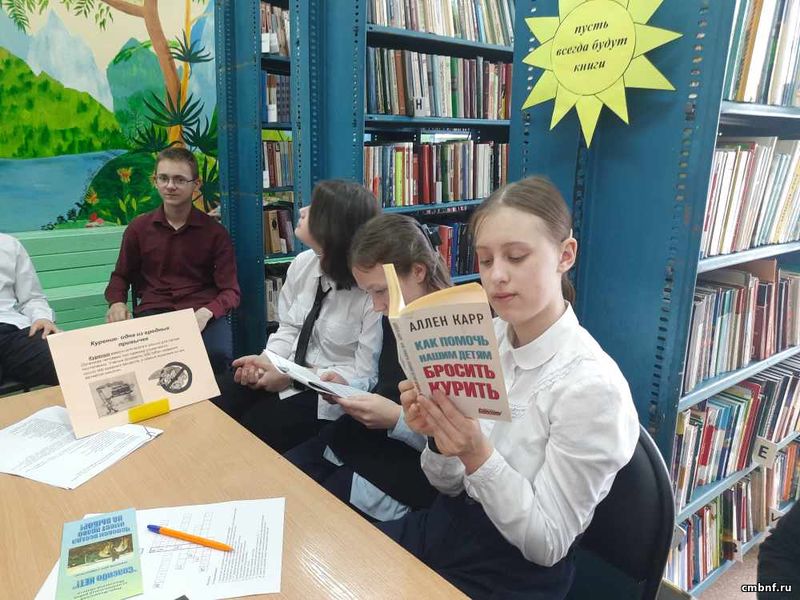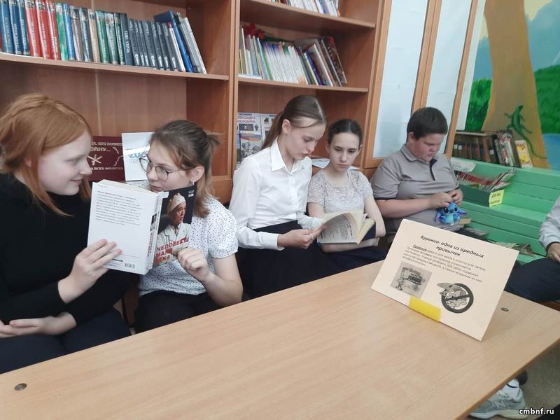 Библиотекарь Любовь Бурова познакомила ребят с историей появления табака и сигарет, проинформировала о том, сколько в мире страдает и гибнет людей от этой пагубной привычки. Поговорили о том, что курящий человек приносит вред не только себе, но и окружающим.