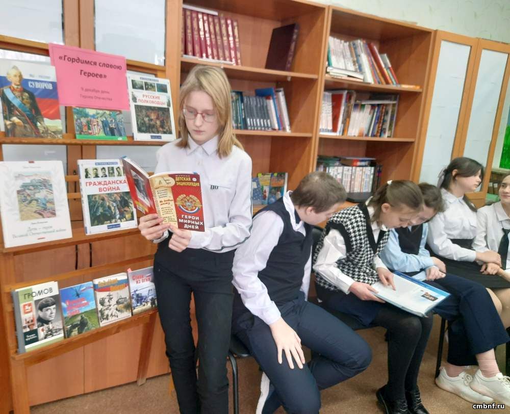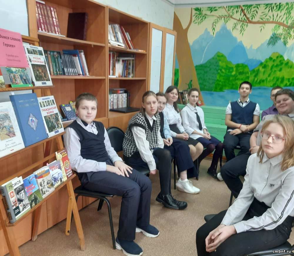 6 декабря библиотекарь Любовь Бурова (д.Веселево) провела для учащихся школы урок мужества - «Учись у Героев Отчизну беречь!».