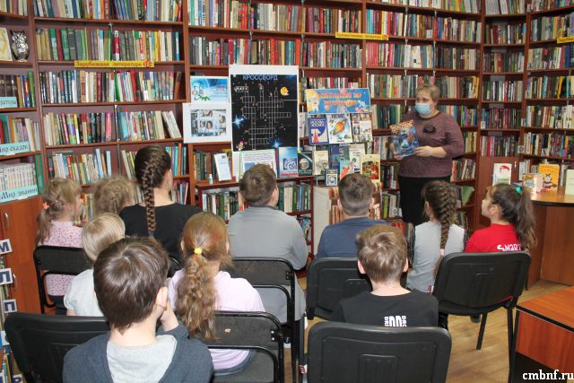 Библиотекарь Н.В. Вечкаева рассказала присутствующим об истории освоения космоса, о первом человеке, совершившим космический полет, о подготовке к полету. Дети узнали интересные факты биографии Ю. Гагарина, о свершениях других космонавтов и конструктора С.П. Королева.