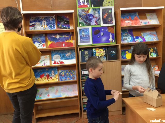 В отделе обслуживания читателей состоялось открытие выставки-голосования «Удивительный мир космоса», посвящённой 60-летию со дня полёта Ю.А. Гагарина в космос. Инициатор выставки Г.А. Антонова рассказала посетителям библиотеки об этом памятном дне, показала книги, посвящённые космическим исследованиям, и рисунки детей, выставленные на специальных стендах. Юные читатели библиотеки выразили в красочных работах своё знание космоса и личное к нему отношение. Кто-то изобразил известные планеты, а кто-то инопланетян.