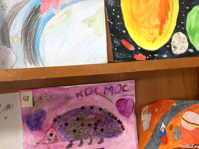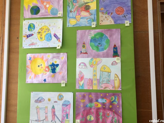 Многие дети нарисовали мультяшных героев космоса: Космическую корову, Космического ежа и Космического медведя . В заключение желающие проголосовали за понравившиеся рисунки.