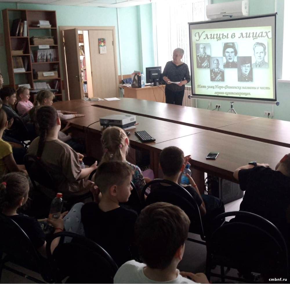 Библиотекарь Анна Борщева показала презентацию о героях-защитниках Наро-Фоминска в годы Великой Отечественной войны, библиотекарь Татьяна Цыганова рассказала о подвигах этих героев, совершённых на полях сражений страшной и кровопролитной войны.
