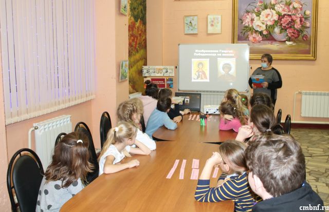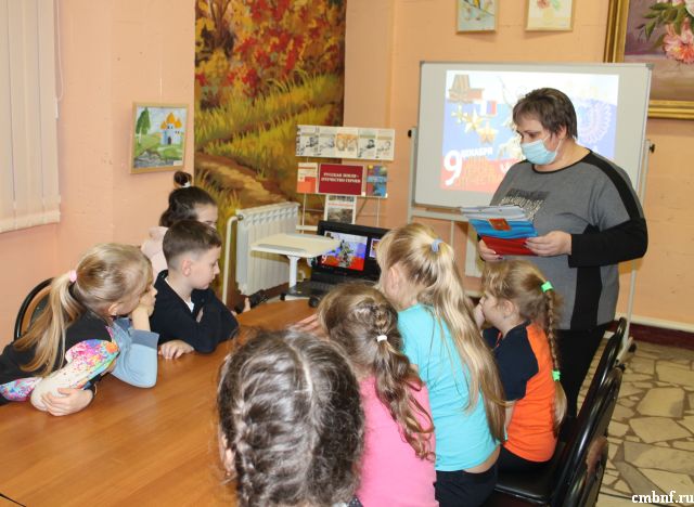 Ребята с большим интересом и вниманием слушали рассказ о подвигах героев, сопровождавшийся презентацией, отвечали на вопросы и вспоминали пословицы о героях. Они также узнали, что легендарным героям посвящены книги, представленные на книжной выставке.