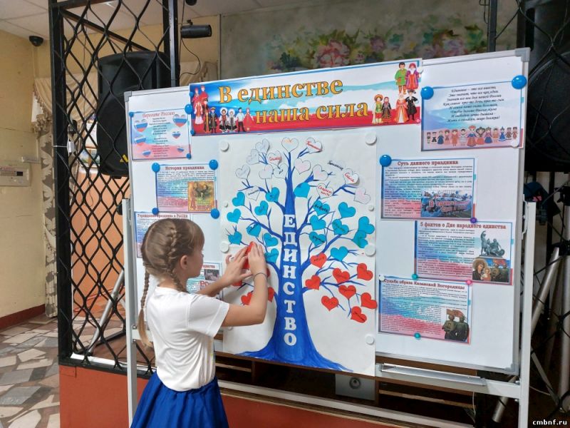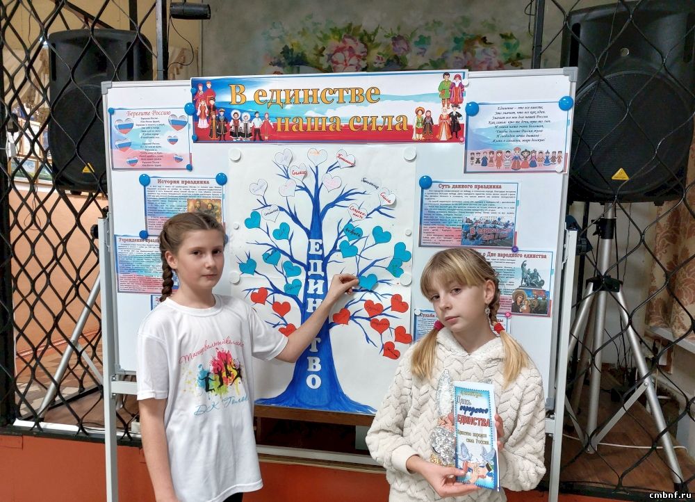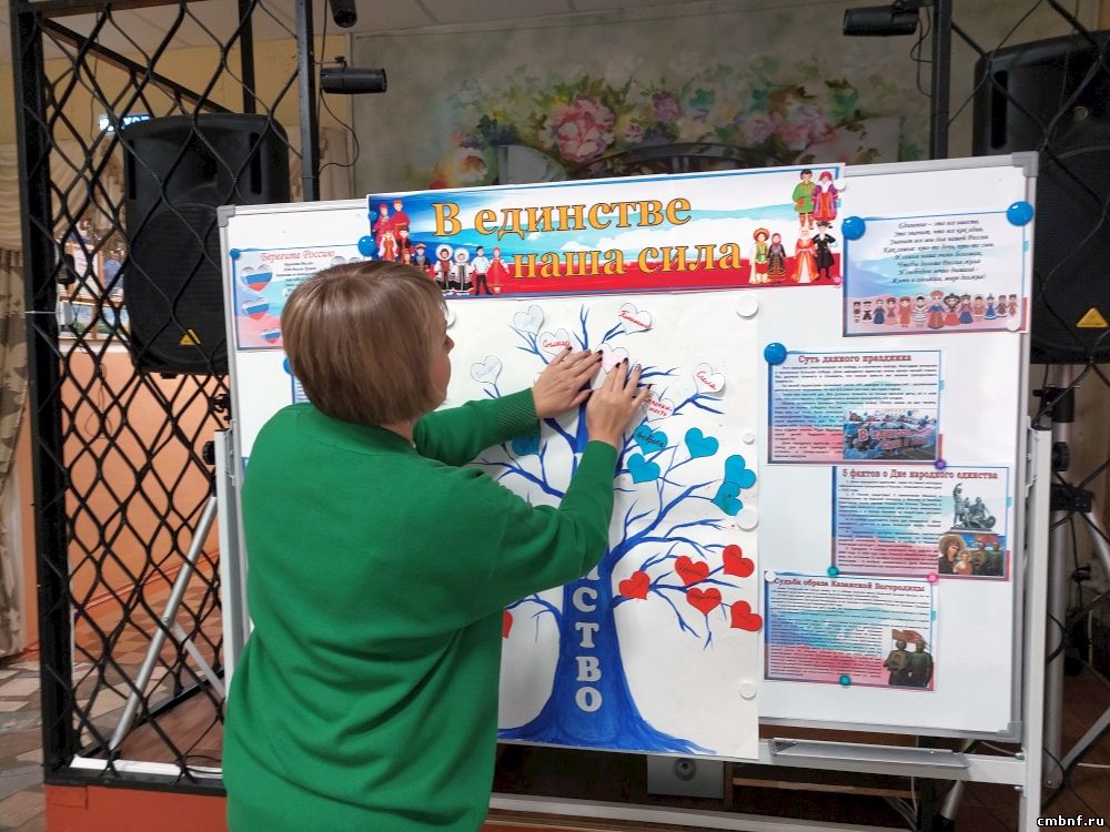 Ко Дню народного единства в библиотеке д.Головково прошла патриотическая акция «В единстве – наша сила». Библиотекарь Наталья Вечкаева рассказала посетителям историю праздника, познакомила с основными событиями и главными участниками 1612 года и раздала буклеты и закладки с историческими фактами об одном из самых значимых праздников нашей страны. Участникам акции предлагалось ответить на вопрос «Что такое единство?». Свои ответы они писали на сердечках и прикрепляли к «Дереву единства». В завершение акции получилось единое дерево: мира, дружбы, согласия, равенства, братства, понимания и сплоченности.
