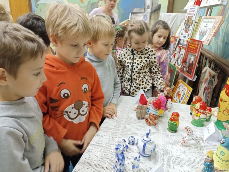 Отдел обслуживания читателей (ул. Латышская, 15б) подготовил тематическую выставку «В каждой избушке — свои игрушки». Посетители выставки познакомились с видами народных промыслов, таких как хохлома, гжель, дымковская игрушка. Библиотекари рассказали об истории создания символа русской культуры — матрешки и притчу об архангельской птице счастья, познакомили с традицией изготовления тряпичной куклы-крупенички.