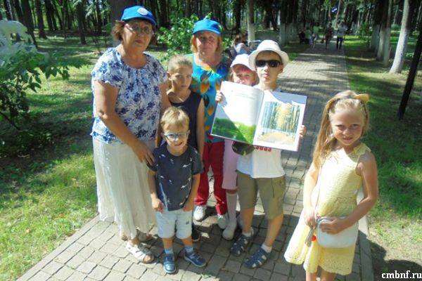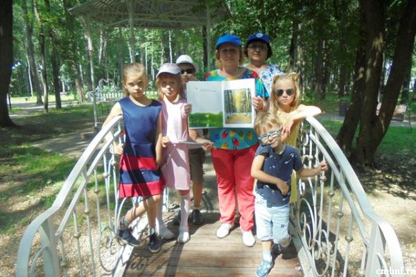 В летний день на территории Городского парка сотрудники библиотеки провели познавательно-развлекательный час для детей и их родителей. В начале встречи прозвучала краткая историческая справка об истории Городского парка.