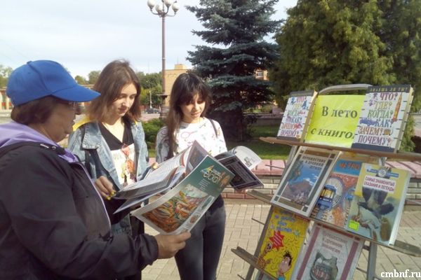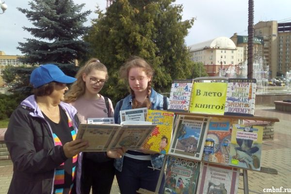 В июле сотрудники отдела обслуживания читателей Центральной библиотеки (ул. Маршала Жукова, д.10) в рамках проекта «Читальный зал под открытым небом» провели на площади Молодёжная цикл бесед и обзоров «Лето - время читать». Библиотекари рассказали о книгах, с которыми интересно провести летнее время отдыха, провели библиотечную викторину «Знаешь ли ты?», познакомили с тематической выставкой «Любителям приключений».