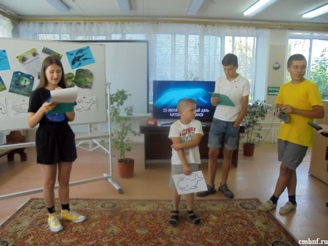 22 июля библиотекари отдела обслуживания читателей (ул. Латышская, 15б) вместе с ребятами из социально-реабилитационного центра «Сказка» отправились в необычное морское путешествие, где их ждали встречи с обитателями морских глубин. Путешествие было посвящено Всемирному дню китов и дельфинов, который отмечается 23 июля. Читатели-волонтеры Вагина Настя и Шкурат Марк встретили ребят загадками, в которых была определена тема путешествия, а также рассказали о том, что море волнует человека не только своей загадочностью и подводным миром. В морских глубинах живут потрясающей красоты животные и растения, и чтобы все эти сокровища не исчезли навсегда, появились в календаре такие праздники.