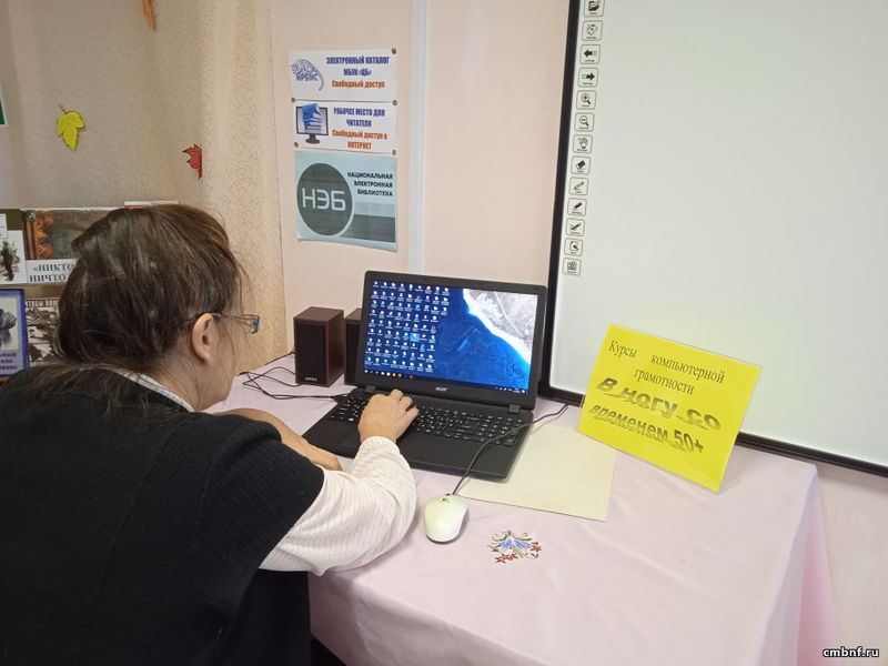 В рамках проекта «Активное долголетие в Подмосковье» для людей старшего поколения в библиотеке д.Шустиково проходят еженедельные курсы компьютерной грамотности «В ногу со временем 50+».
