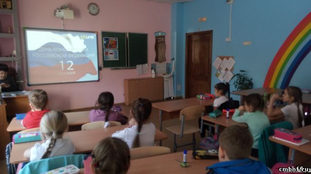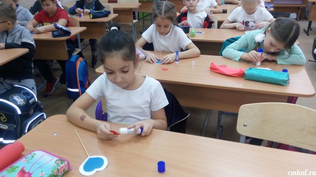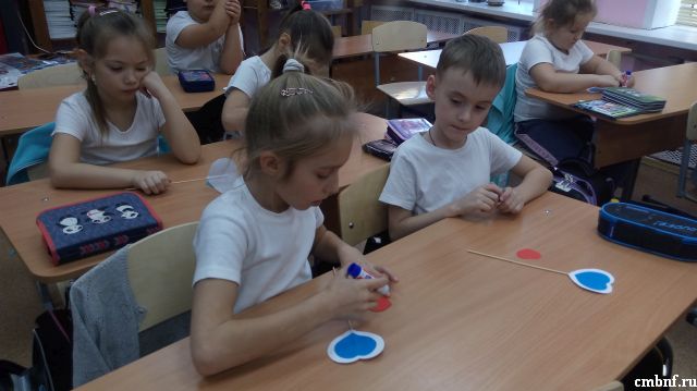«В символах России – история страниц» - мероприятие, посвященное празднованию Дня Конституции, прошло в Наро-Фоминской средней школе № 6 с углубленным изучением отдельных предметов. Мария Александровна Пантелеева (библиотекарь п. Новая Ольховка) и Наталья Александровна Мельникова (учитель начальных классов) показали детям видеопрезентацию, рассказали об истории праздника, и государственных символах. Предлагаемый мастер класс по изготовлению флага в виде сердца детям очень понравился, учащиеся выполнили поделку, которая осталась им на память.