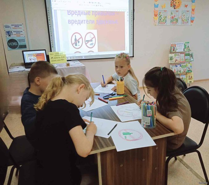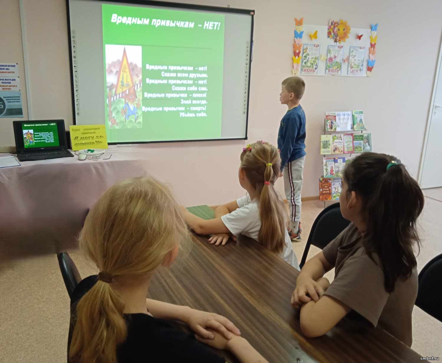 В библиотеке д.Шустиково был проведён оздоровительно–игровой час «В здоровом теле – здоровый ум», во время которого участникам была показана презентация, рассказывающая о влиянии наркотиков и других вредных веществ на сознание человека и его здоровье.