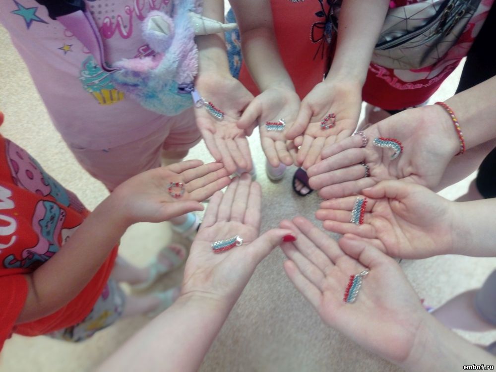 Продолжилось мероприятие мастер-классом по бисероплетению «Наш любимый Триколор». Своими руками ребята с удовольствием смастерили триколор в виде брелоков и колечек.