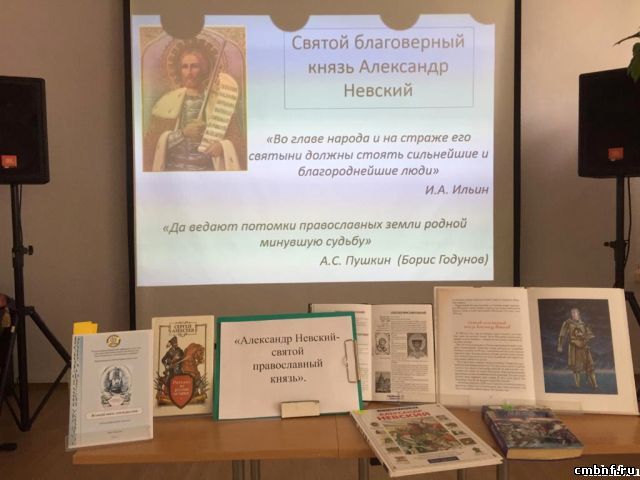Библиотекарь С.Ревина организовала с присутствующими литературно-исторический портрет «Великое имя России», познакомила с биографией самого известного в истории русского князя, провела рекомендательный обзор литературы «Александр Невский - святой православный князь». Волонтёр библиотеки Пустаханова В.С. зачитала отрывки из книги В.Поротникова «Ледовое побоище», существенно дополнив литературно-исторический портрет святого князя-воина.