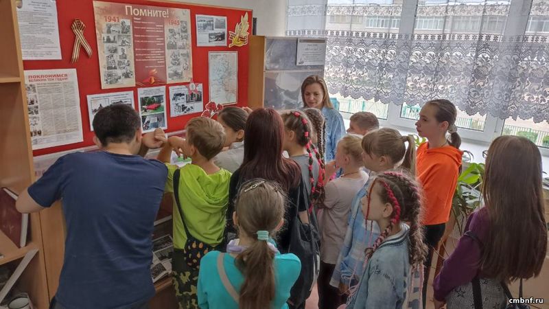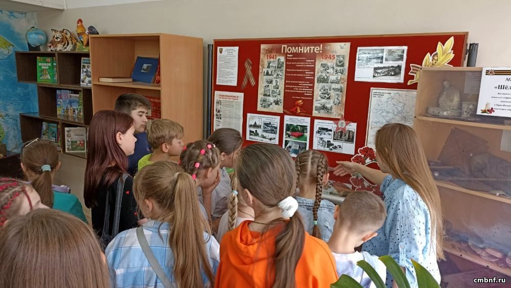 Галина Антонова пригласила юных посетителей совершить тематическую прогулку «Военная археология» по библиотечному мини-музею «Шёл солдат».