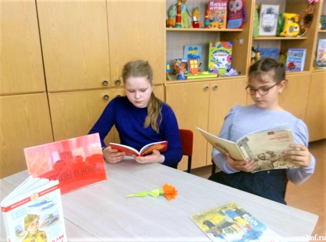 В зале досуга «Затея» Центральной библиотеки ученикам 3 и 4 классов библиотекарь Цепкова М.М. прочитала рассказы Е. Кузнеца «Воздушная тревога», «Кулёк сахару», «Победа». Эти рассказы не оставили ребят равнодушными к главному герою - мальчику Егорке, детство которого пришлось на суровые военные годы.