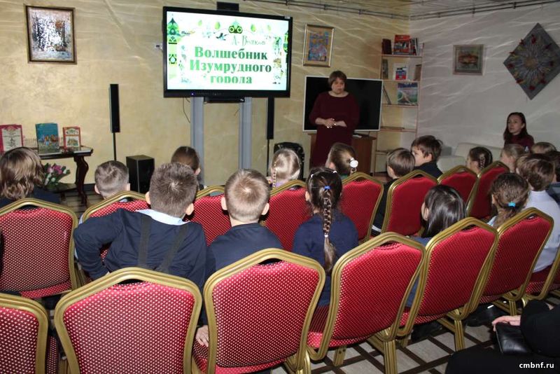 Ребят ожидали рассказ о жизни и творчестве писателя, история создания сказки, знакомство с главными персонажами - Элли, Тотошкой, Страшилой, Дровосеком, Великим Гудвином.