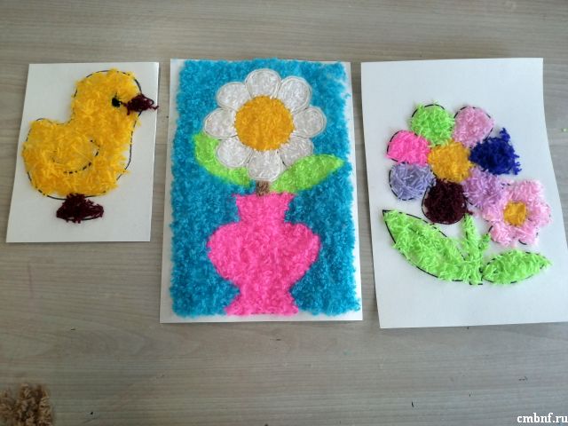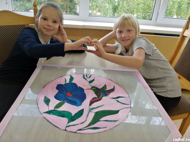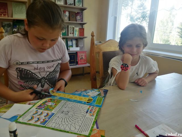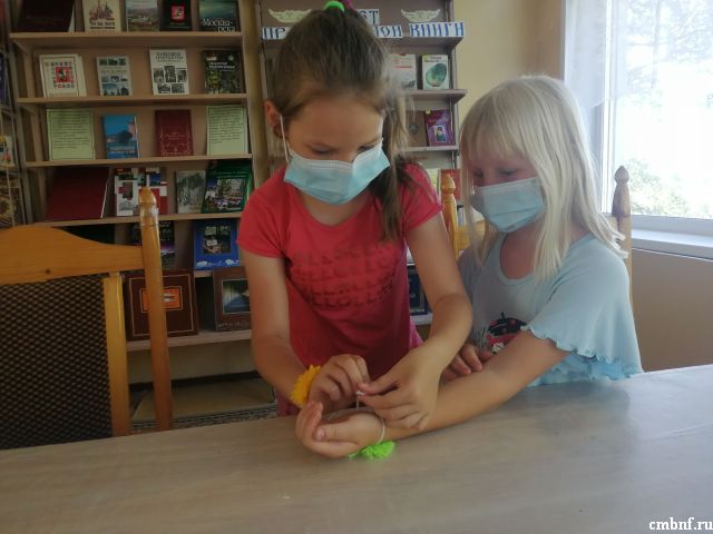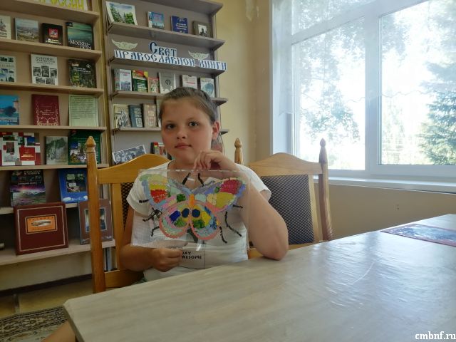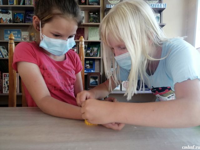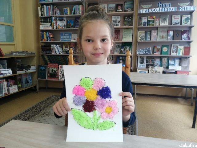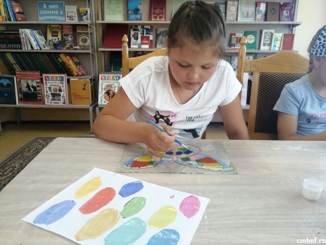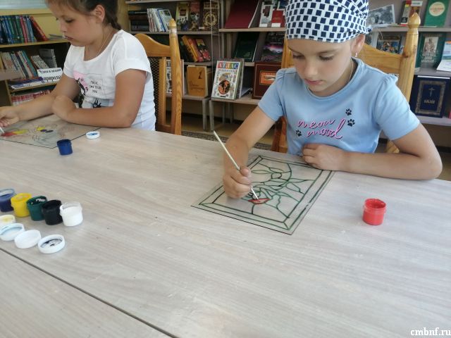 Библиотекарь Анастасия Тихонова познакомила детей с различными видами изобразительной деятельности, с многообразием художественных материалов и приемами работы с ними. Были проведены разнообразные мастер – классы: из бумаги «Божия коровка», из ниток «Умелые пальчики»; «Браслетики подружек»; «Рисование по стеклу», рисование пальчиками и ладошкой.