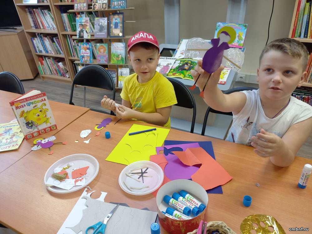 В начале мастер-класса ребята вспомнили персонажей творчества автора и ознакомились с книжной выставкой. Далее из разных видов бумаги и картона смастерили Муху-Цокотуху, героиню знаменитой сказки.