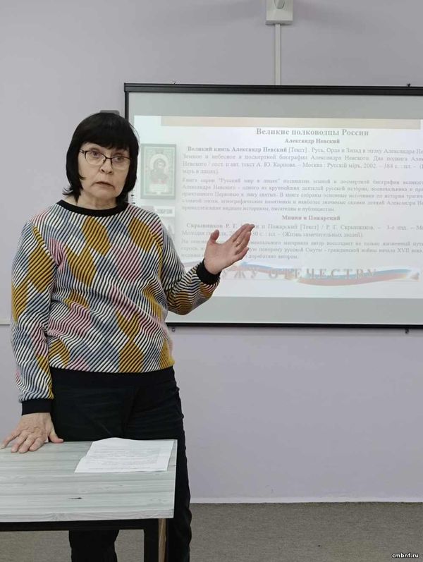 Библиотечный урок «Библиографическое обслуживание. Выполнение справок по запросу читателей» и презентацию виртуальной выставки «Служу Отечеству» провела библиограф Ирина Анатольевна Лукьянова.