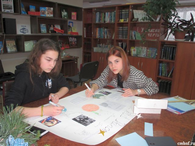 Ребята 7 Б класса средней школы № 5 в рамках клуба «Время читать» в читальном зале библиотеки готовили к конкурсу в школе стенные газеты по следующим прочитанным книгам: А.С. Экзюпери « Маленький принц» и Г. Троепольский « Белый Бим, Черное ухо». Слушая содержание аудиокниг, вспоминая и анализируя прочитанное, они с большим мастерством оформляли, каждая команда свою газету.