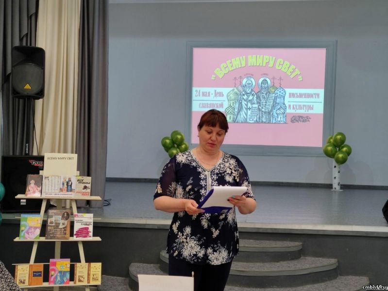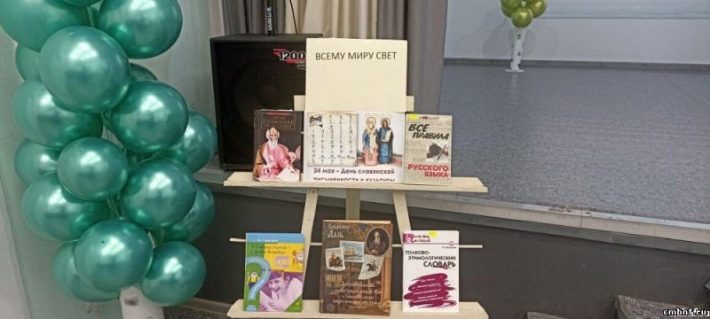 22 мая в актовом зале дома культуры д.Устье прошло мероприятие «Всему миру свет», посвященное Дню славянской письменности, которое провели библиотекарь д. Устье совместно с сотрудниками дома культуры. На мероприятии библиотекарь Сажина О.И. рассказала читателям о том, почему этот праздник отмечается именно 24 мая, о славянских просветителях - создателях славянской азбуки Кирилле и Мефодии, благодаря которым славянские народы стали грамотными, научились читать и писать. К мероприятию была подготовлена книжная выставка «Аз и Буки».