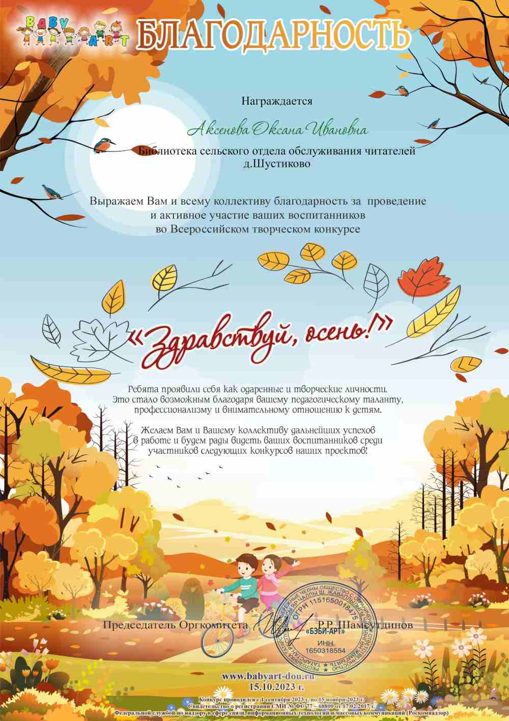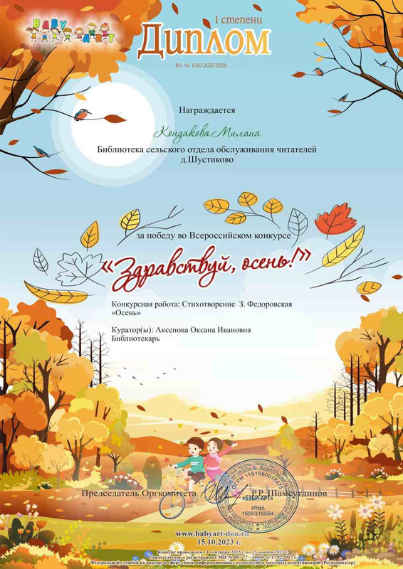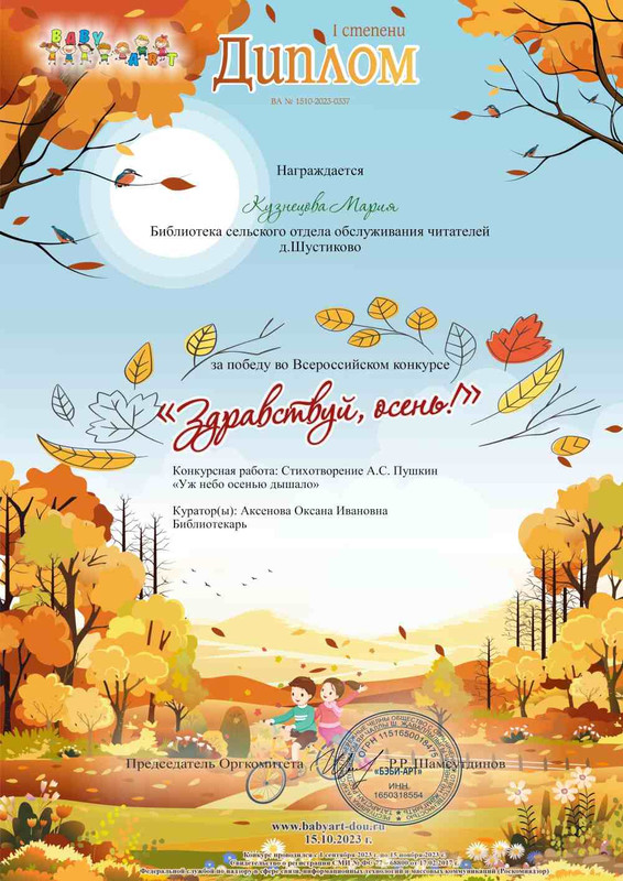 Читатели библиотеки д. Шустиково приняли участие во - Всероссийском онлайн-конкурсе чтецов «Здравствуй, Осень».