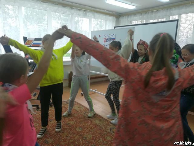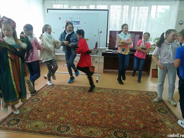 Дальше по пути следования, на остановках Народная-Хороводная, Дружная и Мирная, путешественников ожидали Культура, Обычаи и Традиции русского народа. Ребята просмотрели видеофильм «Виды декоративно-прикладного искусства России», отвечали на вопросы викторины, сыграли в игру «Петушиный бой». Все вместе дружно водили хороводы, отгадывали загадки и смотрели кадры из кинофильмов о русских богатырях.