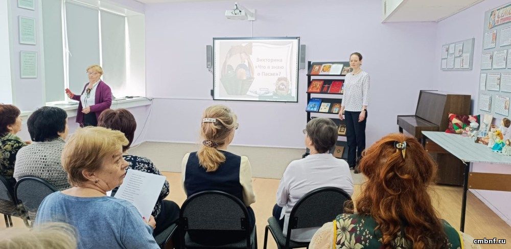 Присутствующие не только активно отвечали на вопросы, но и показали свои домашние тематические заготовки. В исполнении Галины Климовой прозвучали пасхальные песнопения, а читательница Любовь Абанина прочитала стихотворение.