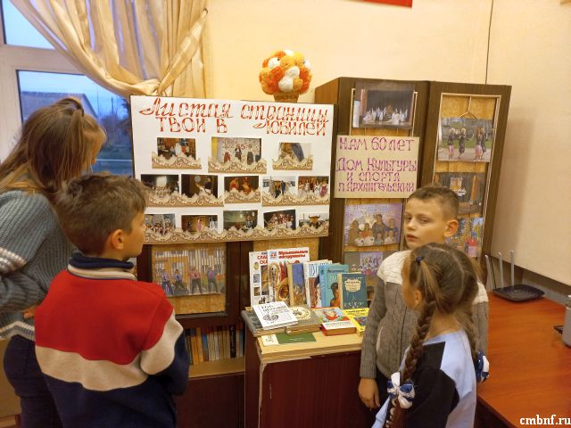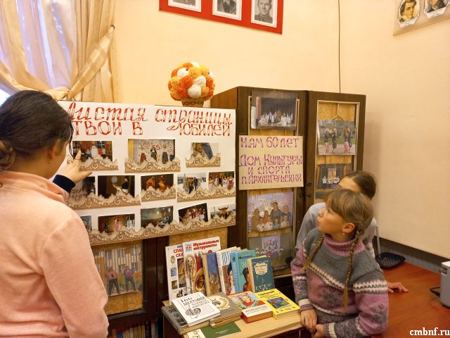 В сельском отделе обслуживания читателей была оформлена тематическая выставка «Встречает Дом культуры юбилей». Наступивший год для Дома Культуры и спорта в пос. Архангельский - юбилейный. Ровно 60 лет назад свои двери для жителей села распахнул новый Дом культуры, и так на протяжении многих лет он является центром проведения всех мероприятий на селе. Творческий коллектив Дома культуры выполняет задачи по сохранению и приумножению культурных традиций. Дом культуры стал местом, куда люди стремятся пойти и получить эстетическое удовольствие. Сегодня Дом культуры — главный организатор всех сельских праздников, центр культуры и творчества. В нём постоянно проводятся праздники, мероприятия муниципального, районного значения, игровые развлекательные программы, вечера отдыха, народные гуляния. В Доме культуры на сегодняшний день работают множество различных кружков и творческих объединений. Мы искренне желаем всем работникам Дома культуры, всем артистам, творцам, энтузиастам здоровья, счастья, благополучия, а Дому культуры творческих удач и свершений, покорения новых высот!