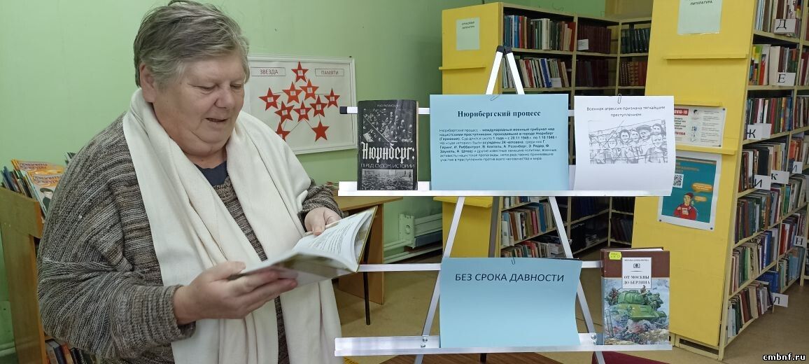 На мероприятии библиотекарь Оксана Сажина рассказала читателям о том, что с 20 ноября 1945 года по 1 октября 1946 года в Нюрнберге проходил суд над высшими государственными и военными деятелями Третьего рейха. Мировой военный трибунал стал первым в истории опытом осуждения преступлений государственного масштаба – правящего режима, его карательных институтов, высших политических и военных деятелей.