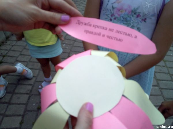 В завершение каждый участник выбрал лепесток с русскими пословицами про значение дружбы в жизни человека.
