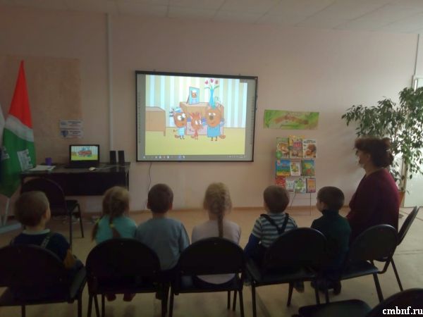 Вместе с юными читателями учились «лечить» книжки. С большим интересом посмотрели мультфильм «Три кота» серия «Библиотека». Активно отвечали на вопросы викторины «Герои волшебного мира».